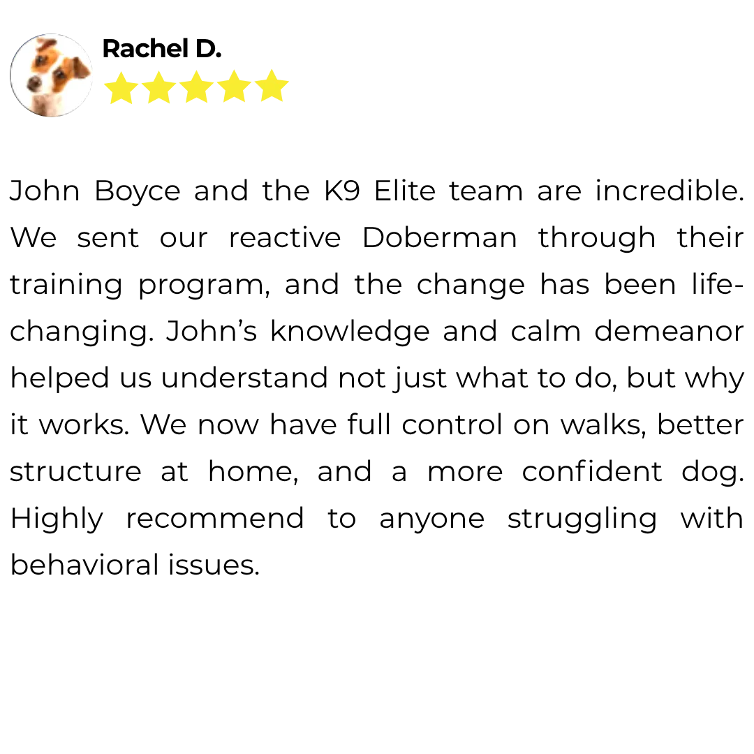 Book your 100% free Transformation Session. No pressure, no gimmicks. Just expert insight into your dog’s behavior and how to finally fix it.